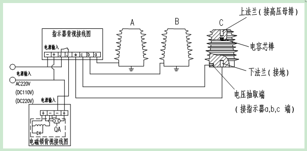 开关柜内可设带电显示装置,以监测一次回路运行情况。该装置还可以与电磁锁配合,实现强制闭锁操作手柄、按钮、网门等操作要素,从而强化产品的防误性能。如图所示。